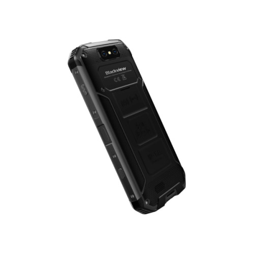 Свою прочность смартфон не скрывает за элегантным стеклянным покрытием. Девайс награжден корпусом из ударопрочного пластика, на боковых гранях которого находятся металлические вставки. Скошенные уголки и многочисленные рельефные элементы позволяют удобно держать смартфон в руке. Выпускается аппарат в черном цвете, но окрас на боковых гранях может быть зеленым или желтым. Также купить смартфон Блэквью можно полностью в черном цвете.